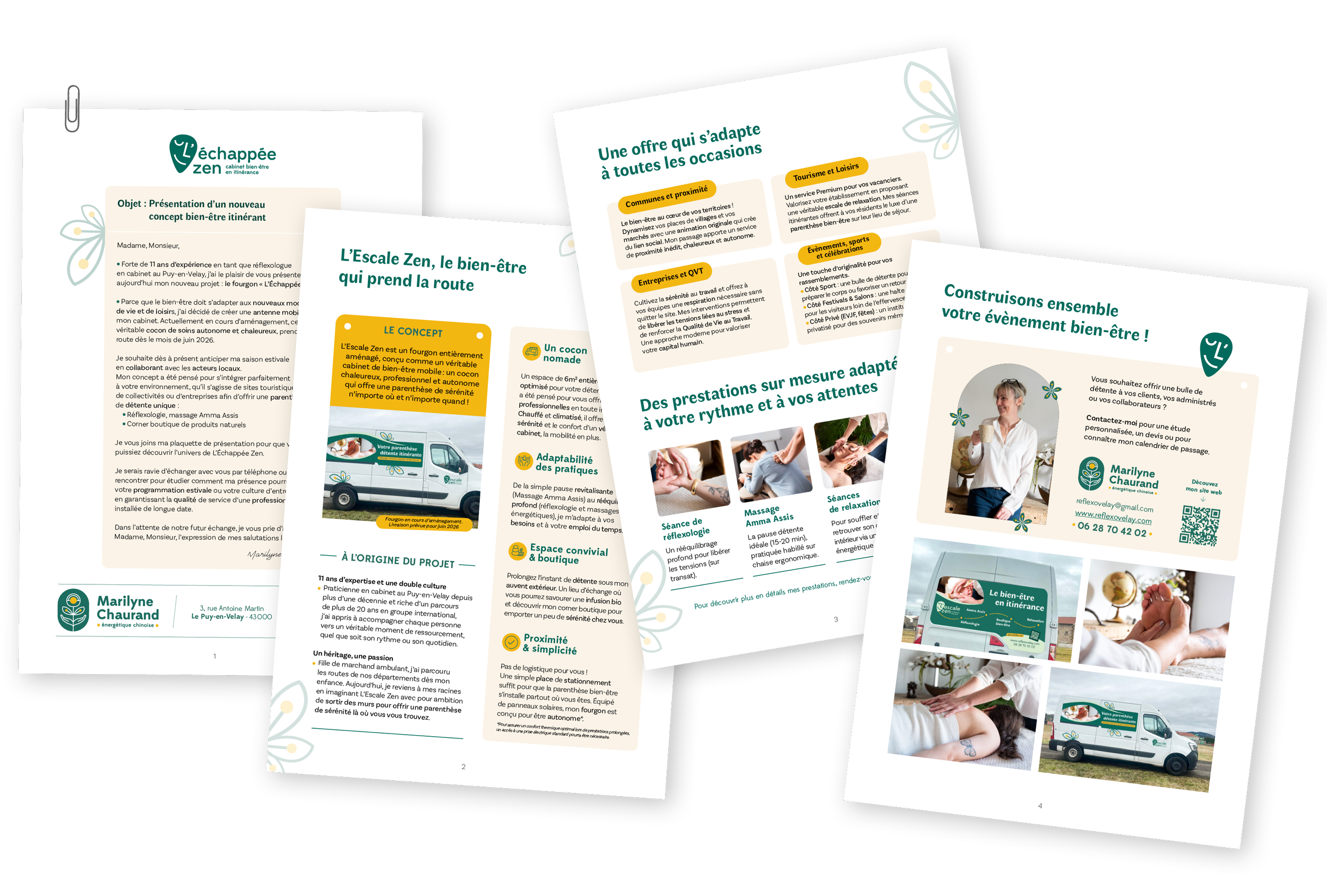 L’Échappée Zen est un fourgon entièrement aménagé, conçu comme un véritable cabinet de bien-être mobile : un cocon chaleureux, professionnel et autonome qui offre une parenthèse de sérénité n’importe où et n’importe quand !